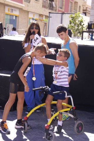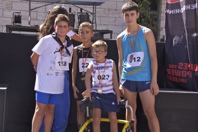 Los más de 50 participantes en la carrera infantil recorrieron una distancia de 800 metros a partir de las 11.30 horas. El primero en cruzar la línea de meta ha sido José Antonio Soriano, el segundo David Hernández y el tercero Bryan Rodríguez.