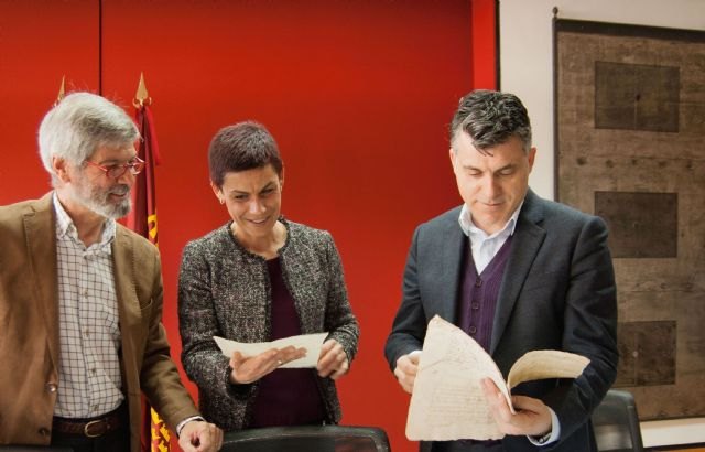 La Consejería de Turismo, Cultura y Medio Ambiente devuelve al Ayuntamiento de Beniel miles de documentos históricos que custodiaba desde 2009 en el Archivo General de la Región. En el acto de entrega participó el director general de Bienes Culturales, Juan Antonio Lorca, y la alcaldesa de la localidad, María del Carmen Morales.