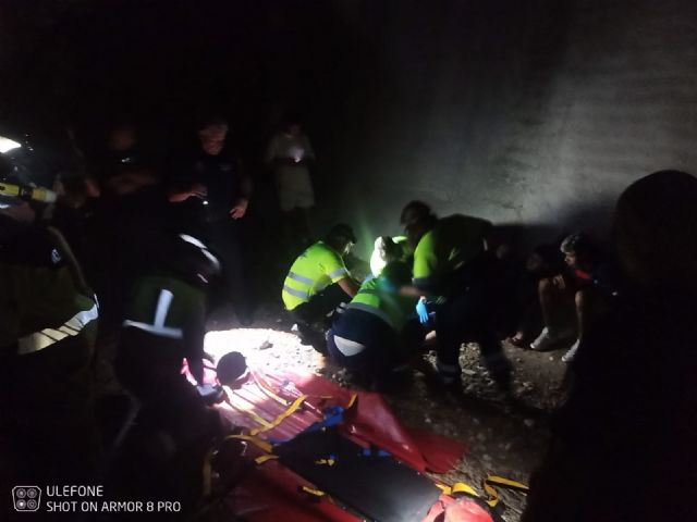 Una vez que sanitarios del 061 han atendido y estabilizado al herido, con heridas en pies y manos, bomberos CEIS han logrado rescatarlo. Posteriormente, ha sido trasladado al Hospital Reina Sofía de Murcia.